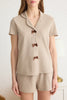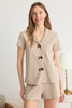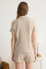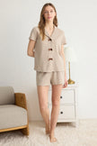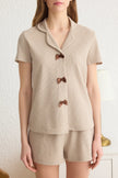 Beige Ribbon/Bow Detailed Waffle Fabric Knitted Pajama Set