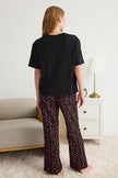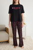 Black 100% Cotton Heart and Slogan Knitted Pajama Set