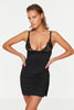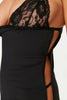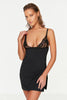Black Lace and Window/Cut Out Detailed Rope Strap Knitted Babydoll