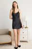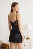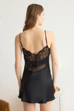 Black Lace Back Rope Strap Satin Woven Nightgown