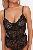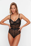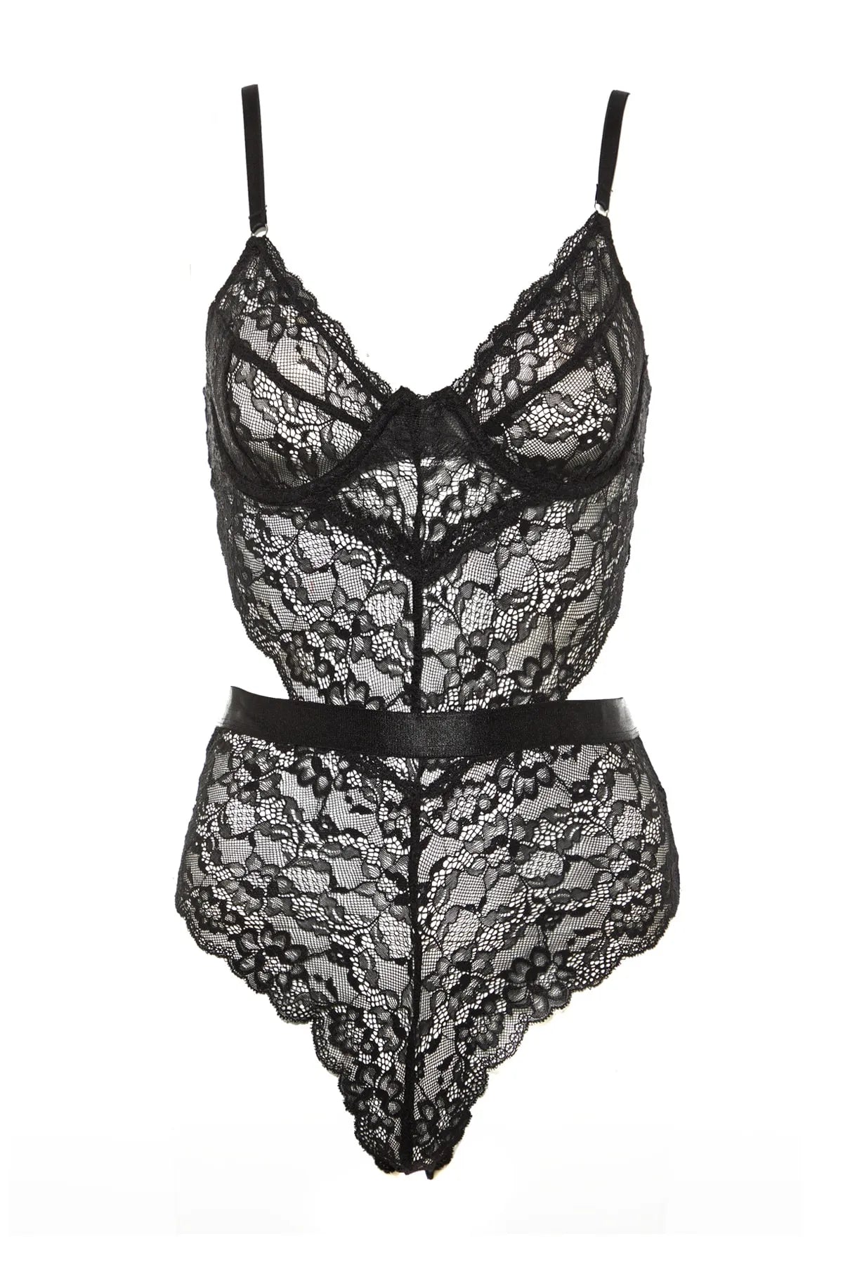 Black lace bodysuit with comfortable cut, ideal for daily use, appealing to all age groups