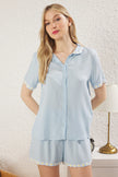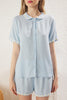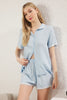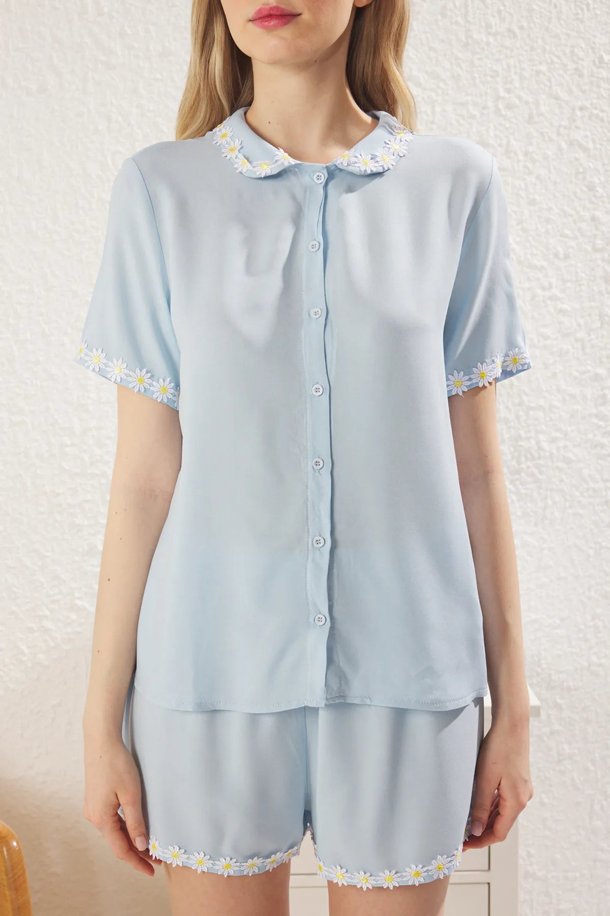 Blue Daisy Striped Viscose Shorts Woven Pajama Set