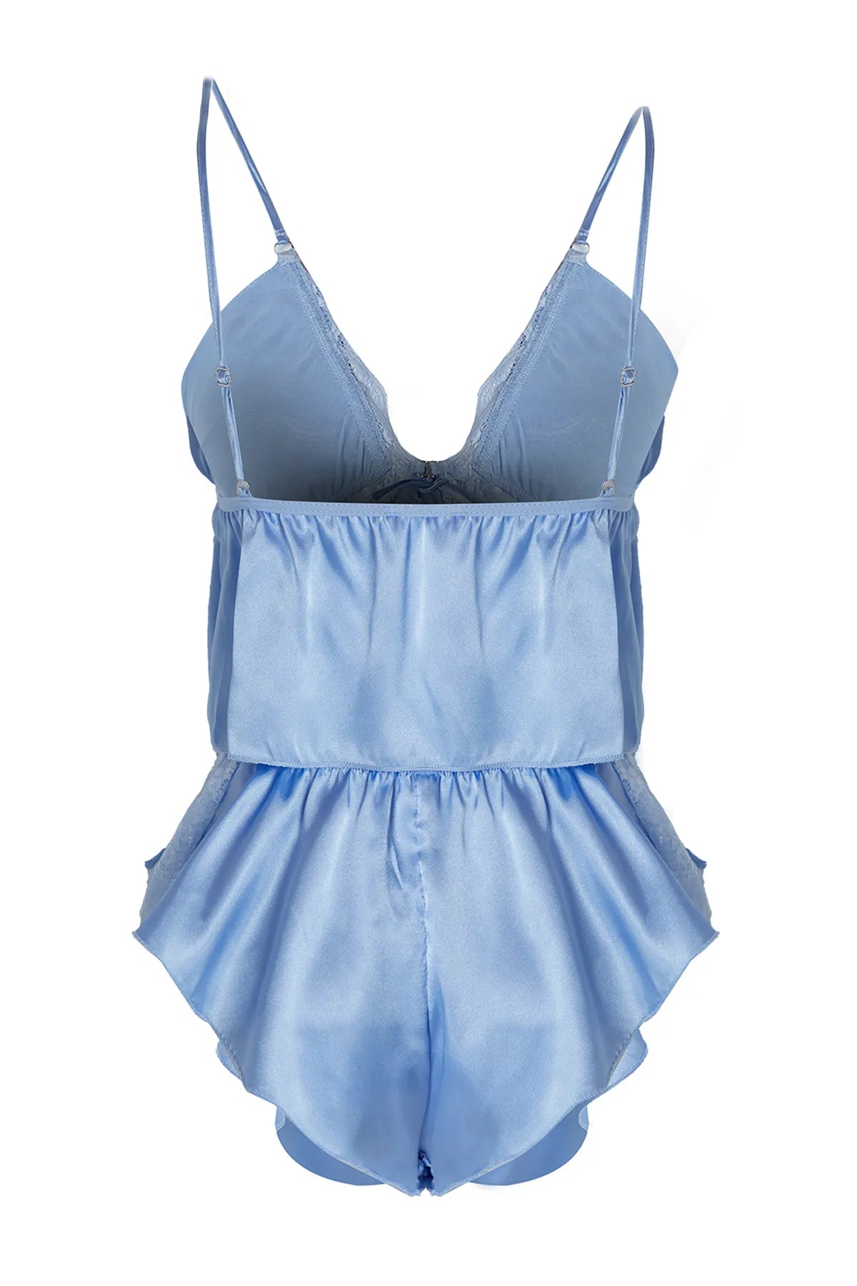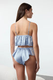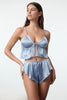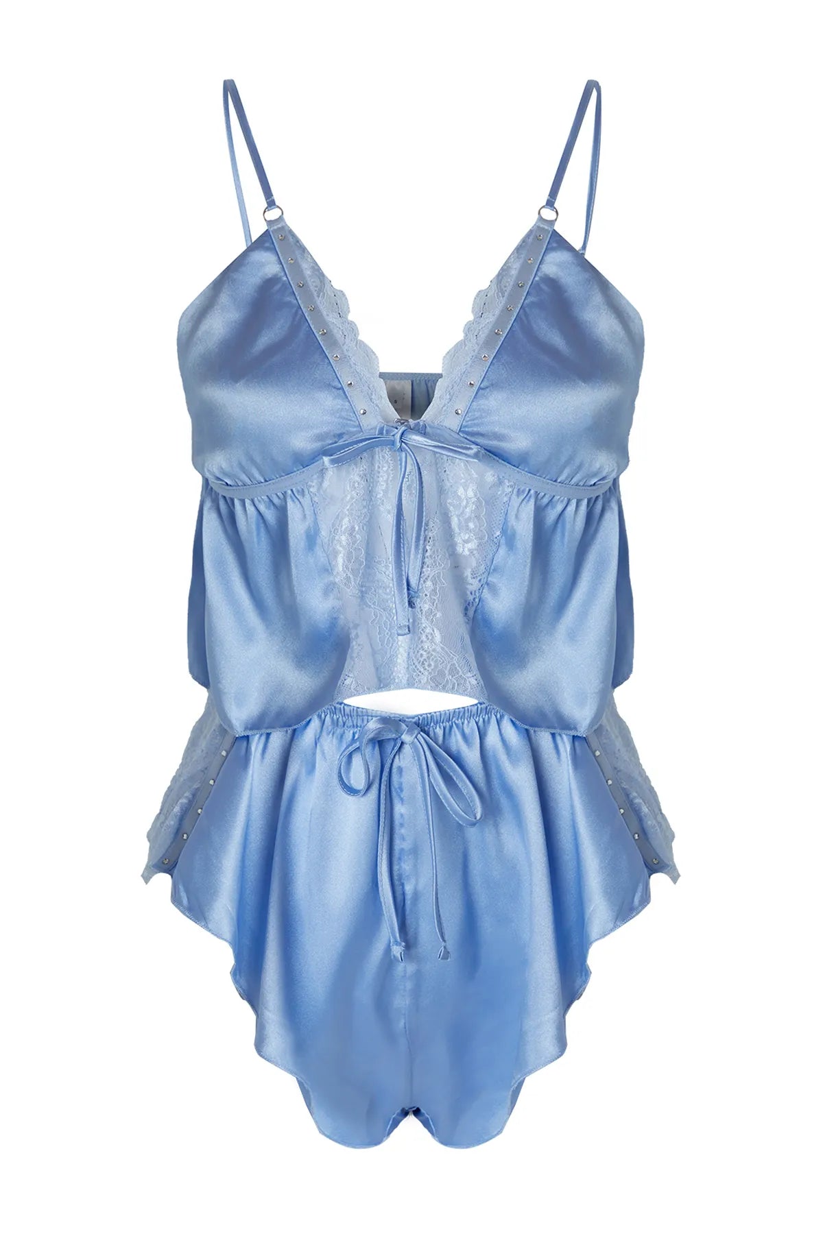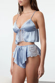 Blue Satin Stone, Ribbon/Bow Detailed Uncovered Underwear Set