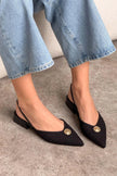 Cassandra Black Kilim Accessory Detail Short Heeled Women's Ballerinas
