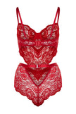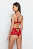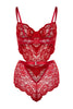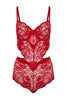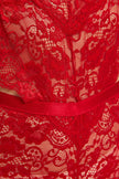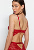 Dark Red Lace Window/Cut Out Detailed Rope Strap Snap Knitted Bodysuit