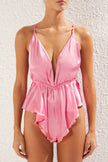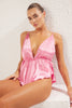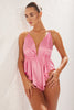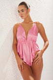 Pink Satin Flounce Rope Strap Knitted Fantasy Nightgown