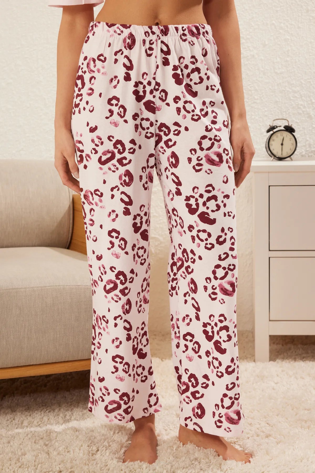 Powder 100% Cotton Leopard Patterned Knitted Pajama Set