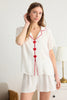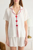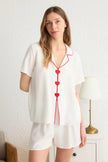 White-Multicolored Heart-shaped Piping Detailed Viscose Woven Pajama Set