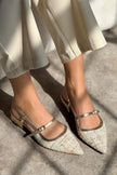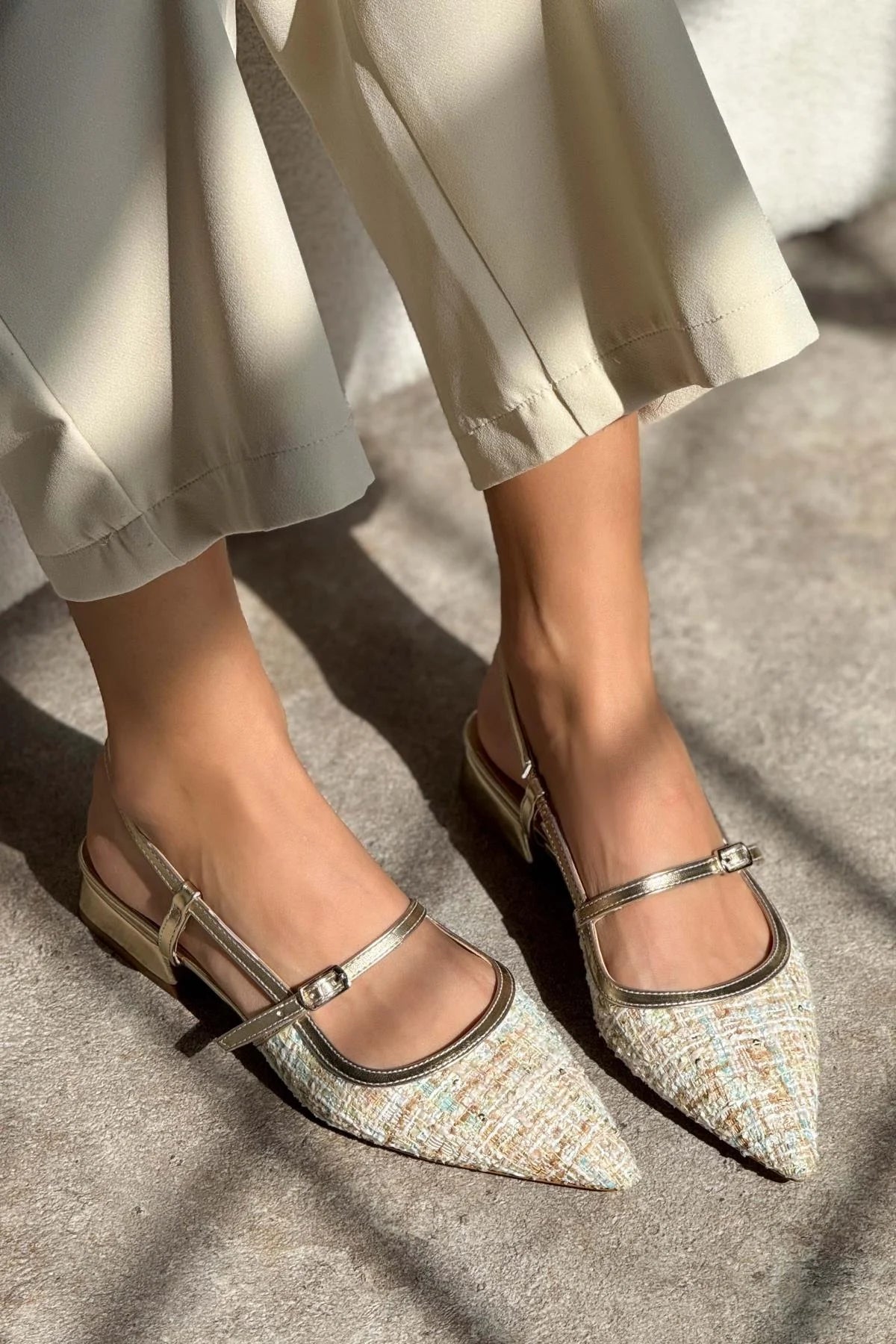 X-HARMONY COLORFUL KILIM GOLD DETAIL BELT DETAIL POINTED TOE SHORT HEEL WOMEN'S BALLERINA