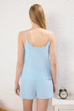 Blue 100% Cotton Self-Patterned Rope Suspender Poplin Shorts Woven Pajama Set