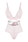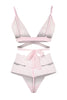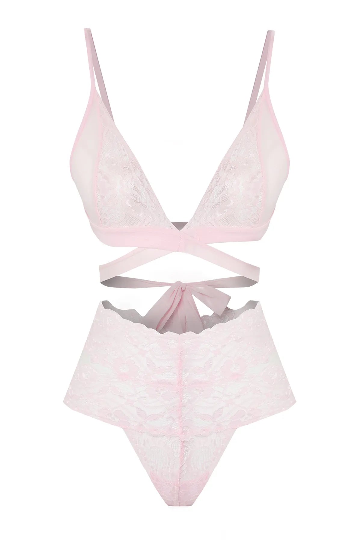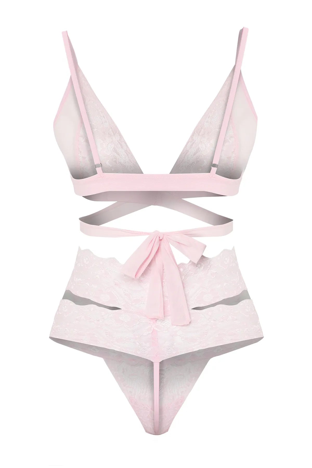 Light Pink Laced Tie Detailed Rope Strap Non-wired Coverless Knitted Underwear Set
