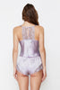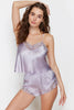 Lilac Lace Rope Strap Woven Pajama Set with Satin Shorts