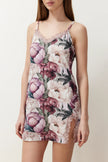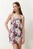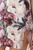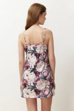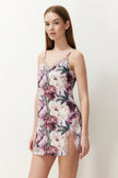 Multicolored Floral Lace Ribbon/Bow and Slit Detailed Rope Strap Knitted Nightgown