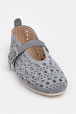 PATTER STONE SUEDE STUDDED GENUINE LEATHER BUCKLE DETAIL FLAT SOLE WOMEN'S BALLERINA