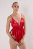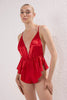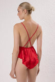 Red Satin Flounce Rope Strap Knitted Fantasy Nightgown