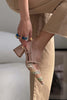 RETRO COLORED WICKER BELT DETAIL POINTED TOE WOMEN'S HEEL SHOES