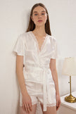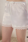 White Belted Lace Detailed Woven Pajama Set with Satin Shorts